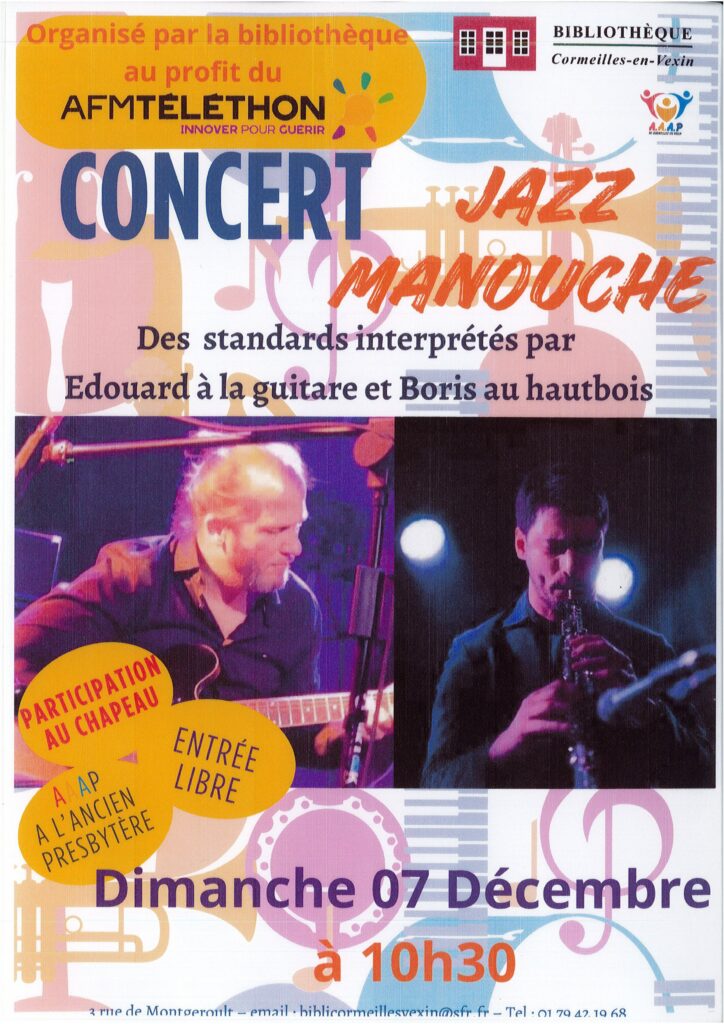 • Concert Jazz Manouche organisé par la bibliothèque au presbytère, 5 rue de Montgeroult
