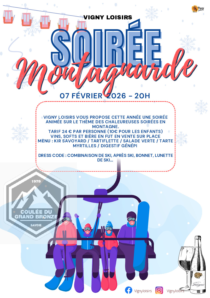 L’association Vigny Loisirs vous propose une soirée montagnarde, samedi 7 février à 20h dans la salle des fêtes.