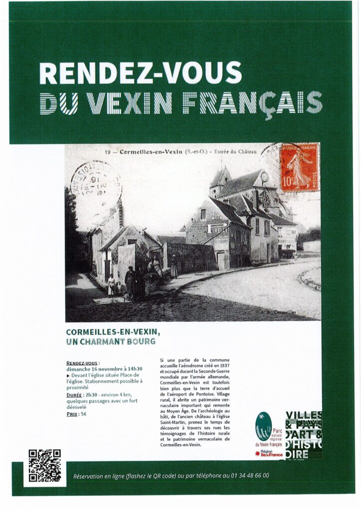 Dans le cadre de son label « Pays d’Art et d’Histoire », le Parc Naturel Régional du Vexin Français propose une visite de Cormeilles-en-Vexin par un guide-conférencier :